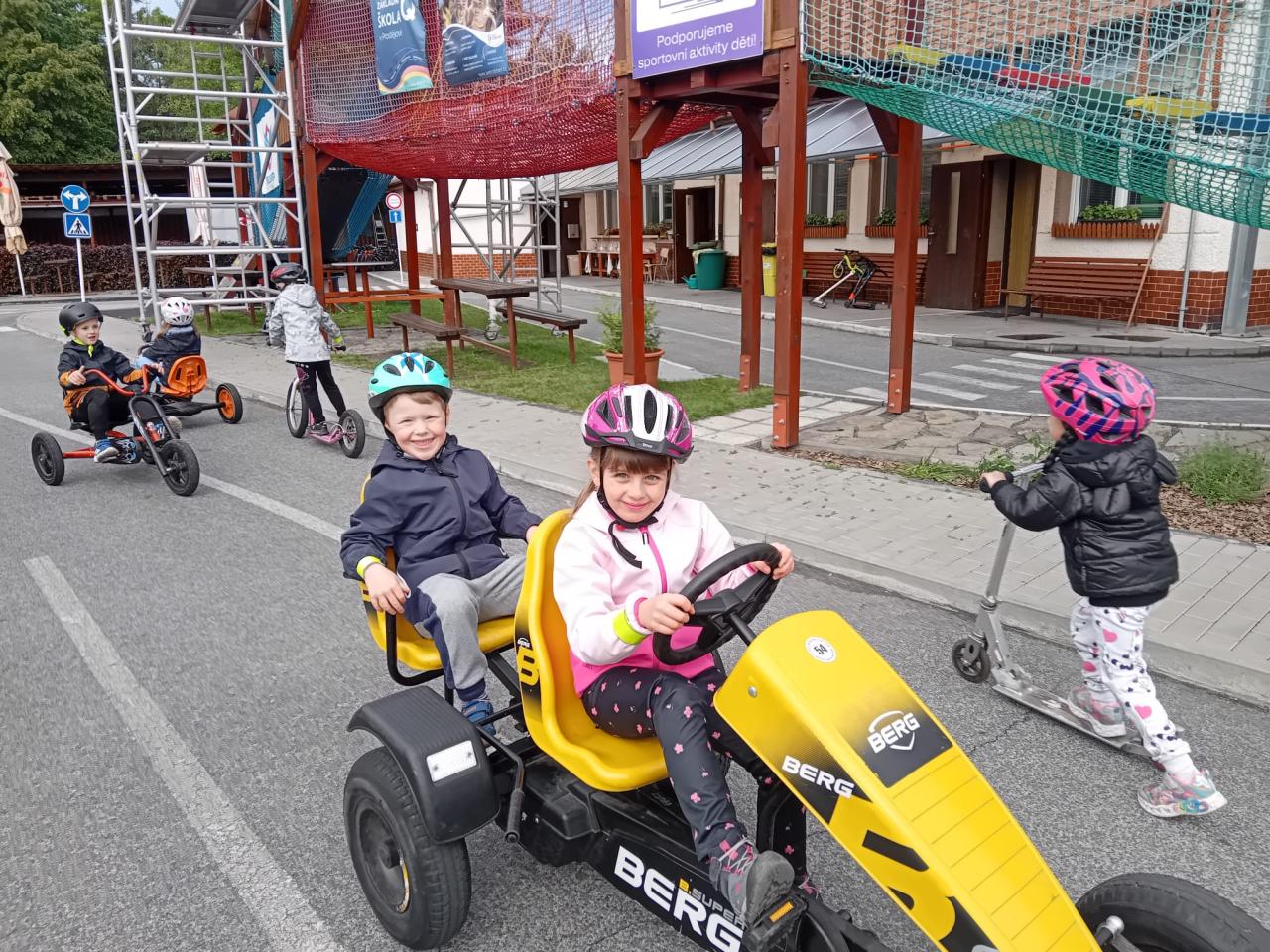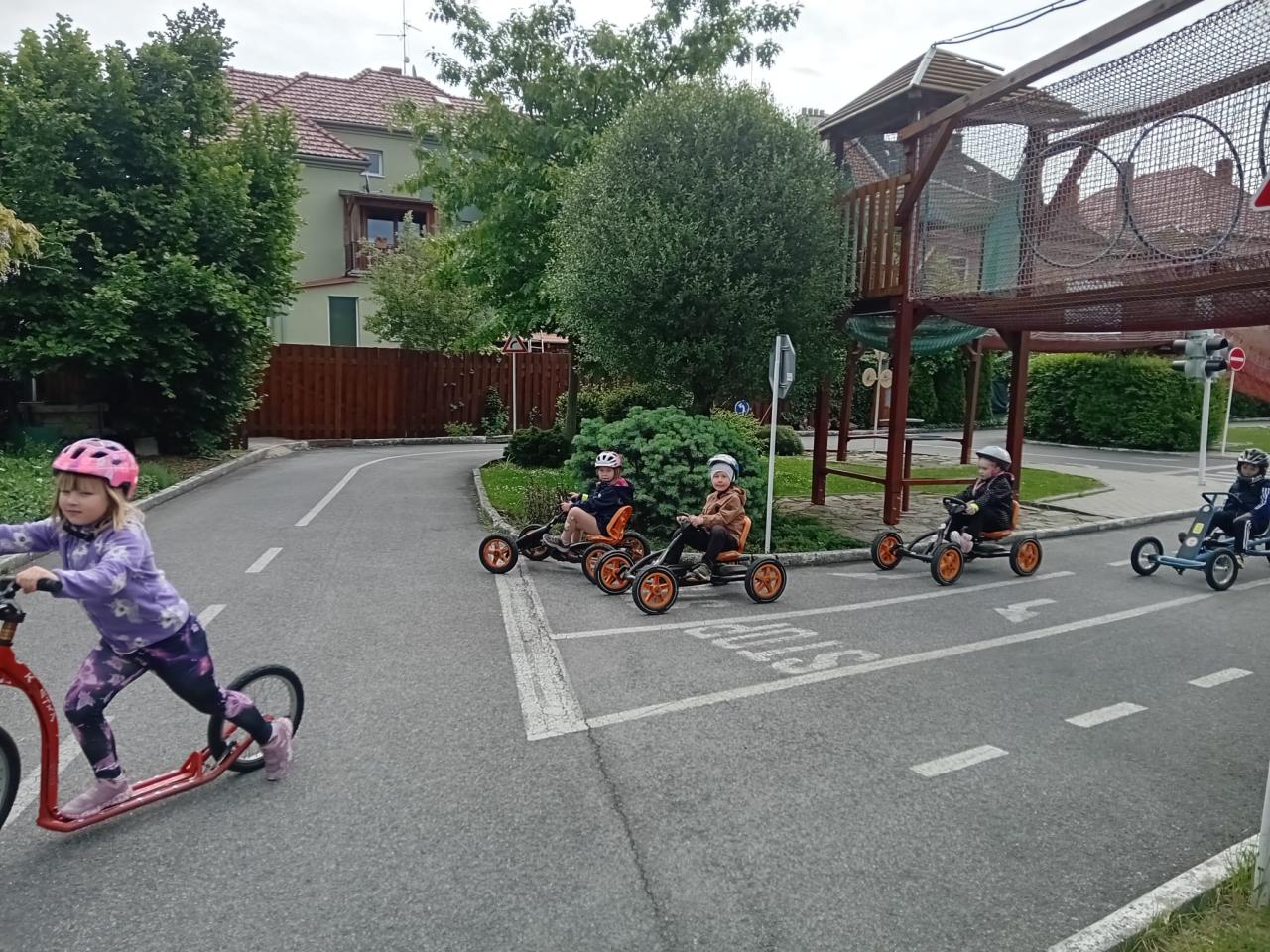 Dne 23.5.2025 děti ze třídy Koťátek navštívily dopravní hřiště v Prostějově. Děti si užily dopoledne s výkladem o bezpečné jízdě na koloběžkách, kolech a šlapacích motokárách.